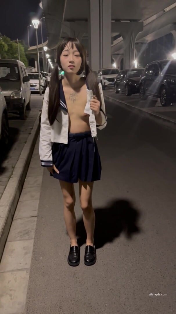 網紅高顏值美少女團隊【西萌工作室】學生嫩妹【涵涵 小淚】深夜街頭戶外露出 JK情趣制服誘惑 (2)