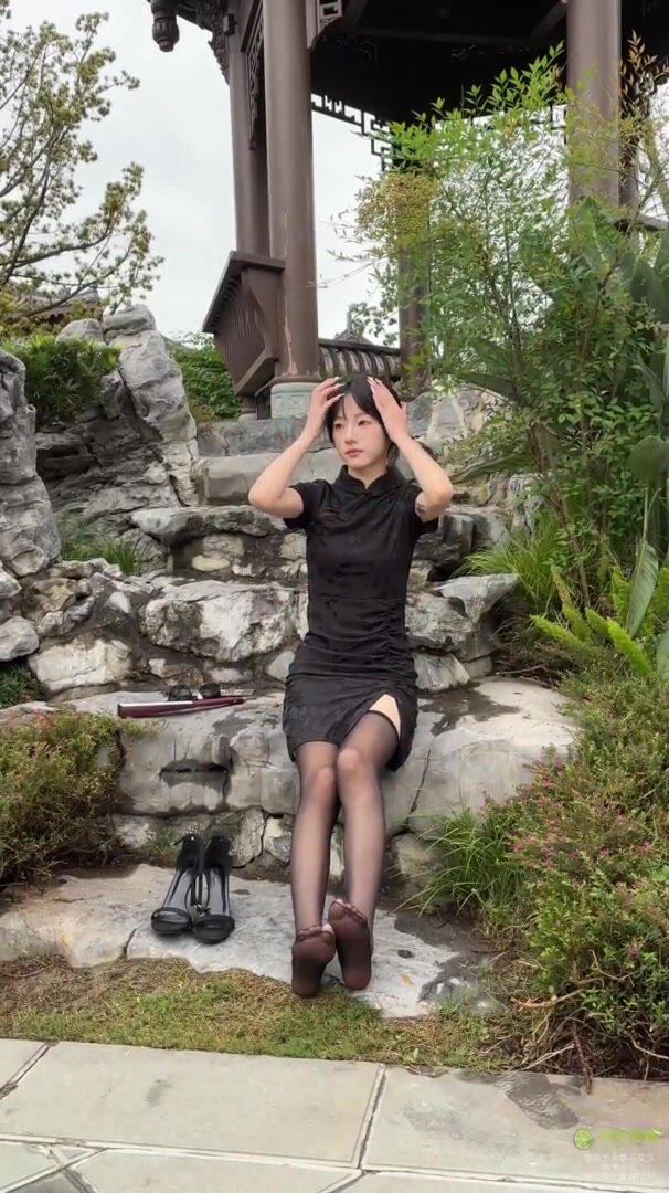 足模攝影福利【青檸映畫 】鄰家清純少女【阿慌】純黑黑絲旗袍