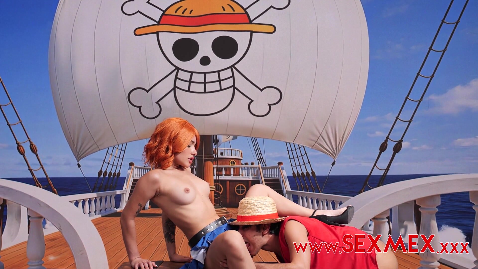 《海賊王》蒙奇d魯夫使用伸縮自如+加橡膠農(二檔+四檔)對那美攻擊,最後把橡膠乳液的橡膠液射出那里美的臉