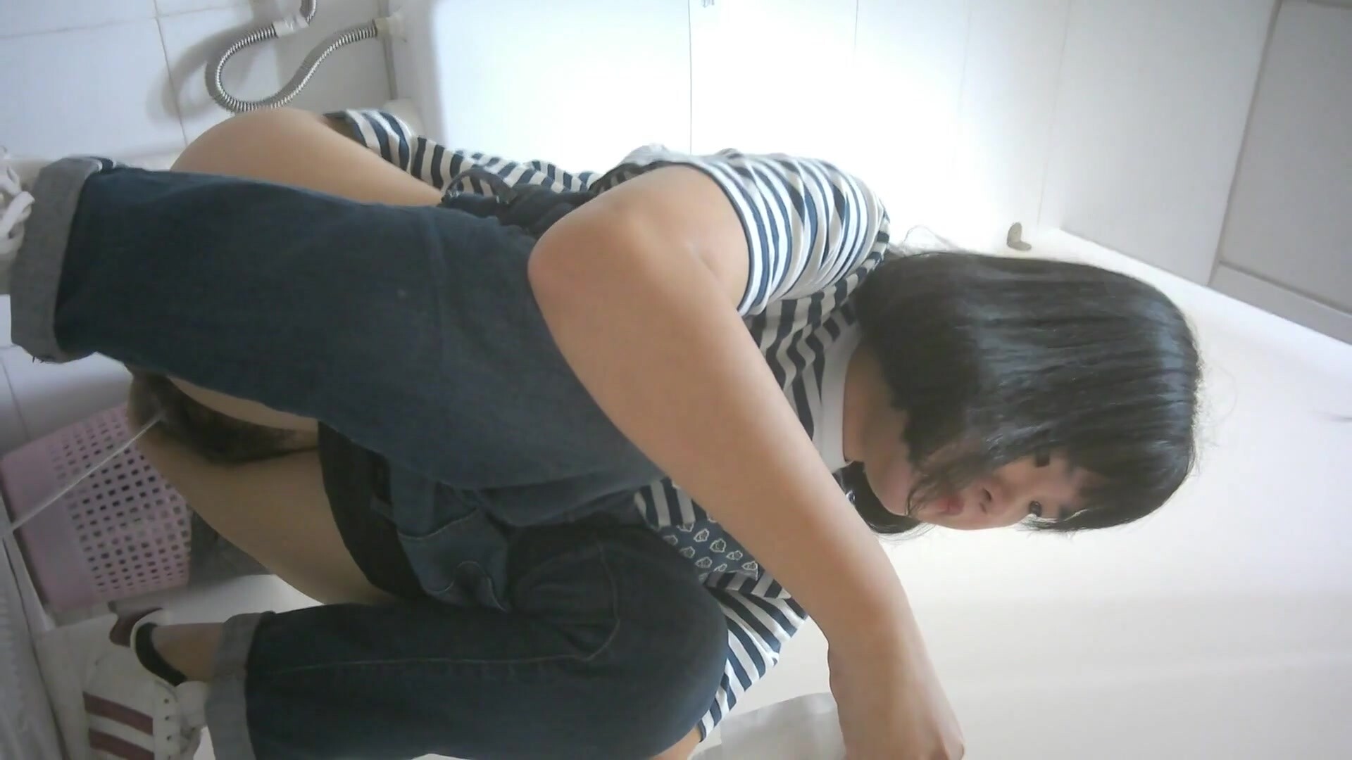 辦公樓近距離偷窺條紋衫美女的多毛大黑B